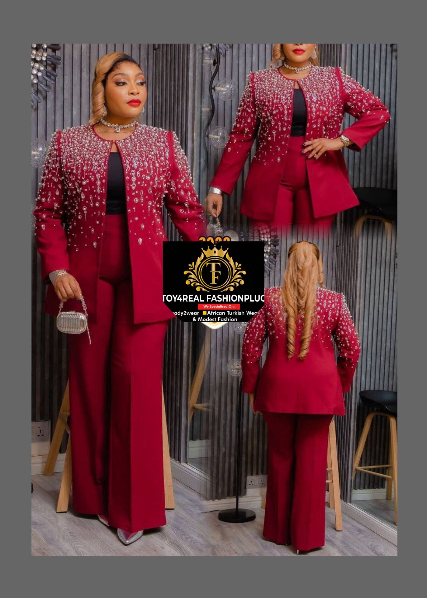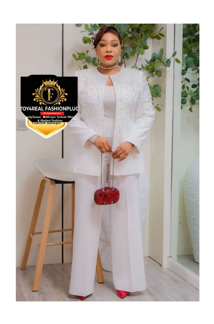 BLAZEUR AVEC UN PANTALON. Là matière sont POLYESTER,ELASTANE&COTTON.C'est top qualité. C'est disponible en couleur blanche &Bordeau